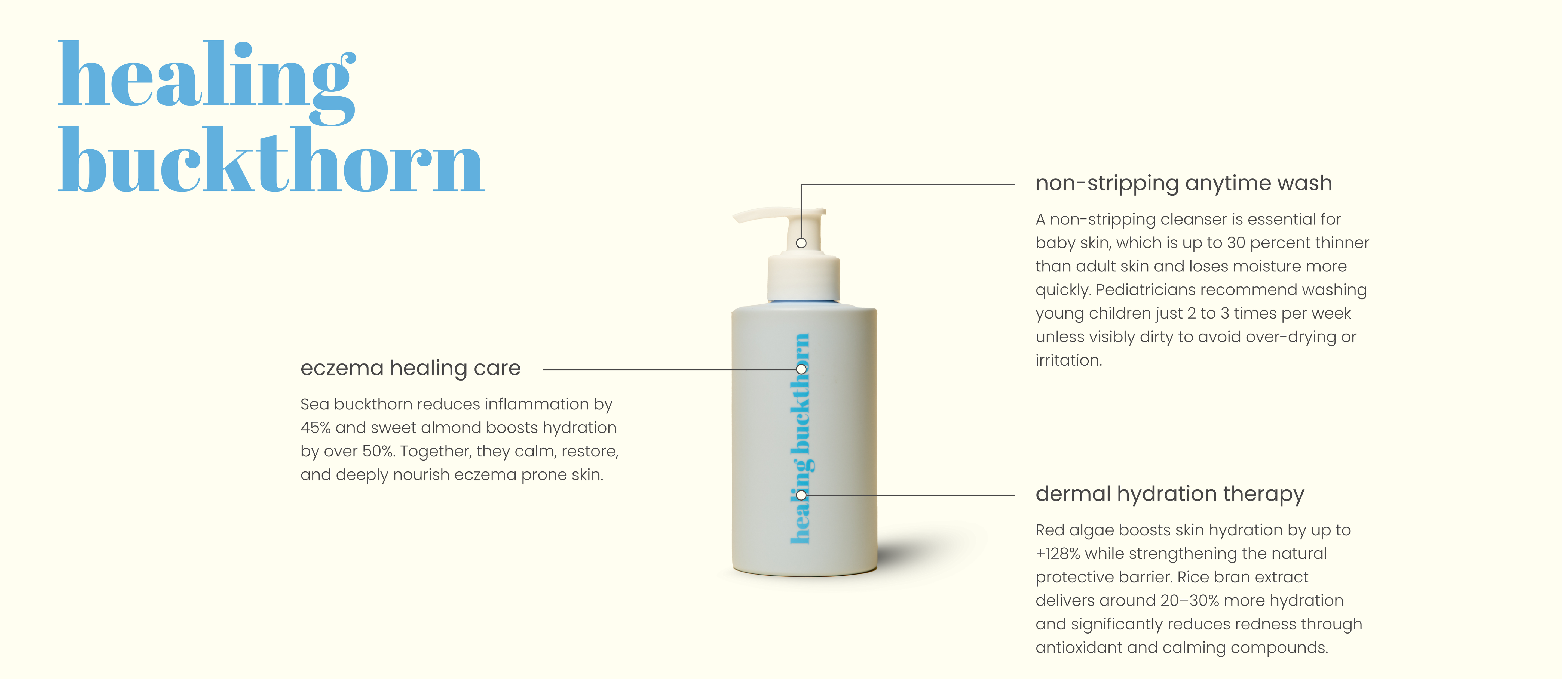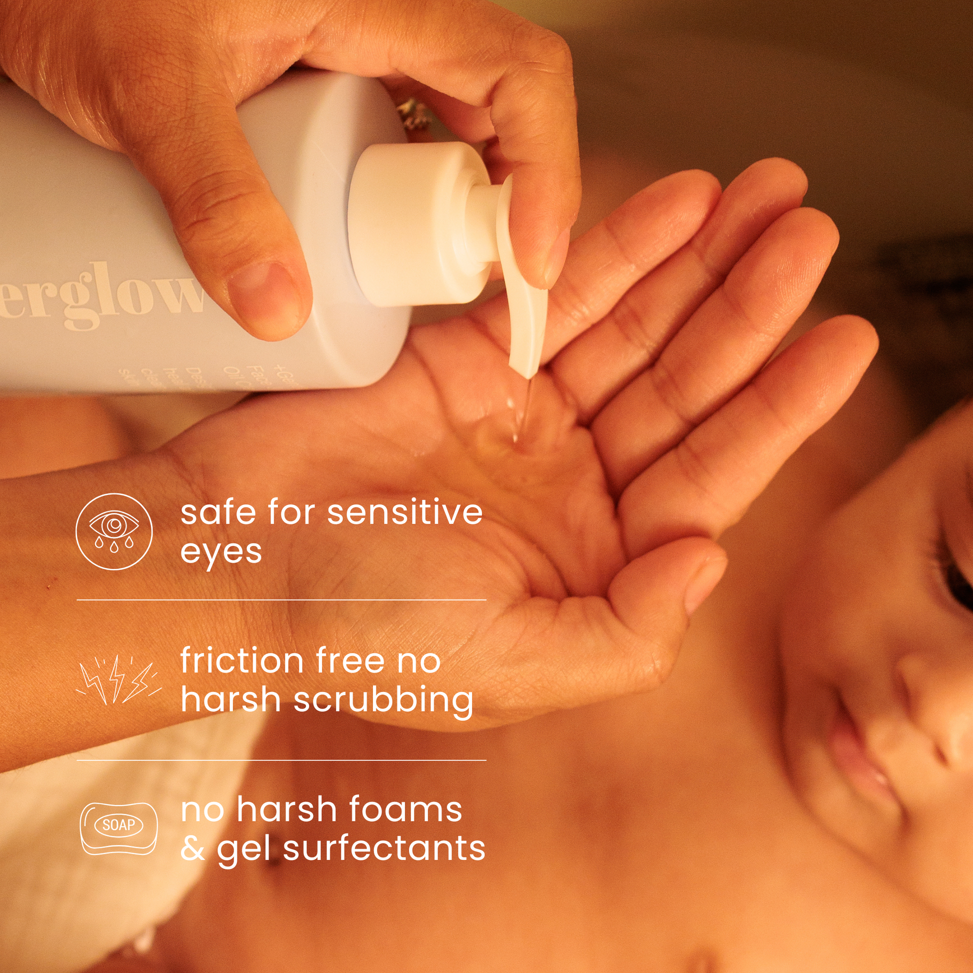 More than just a cleanser, this formula calms visible irritation, deeply nourishes, and helps restore the skin’s natural barrier. It’s especially beneficial for babies struggling with eczema, dry patches, or sensitivity due to heat rash, environmental triggers, or frequent washing. The nutrient-rich, plant-based blend supports long-term skin health with every wash.