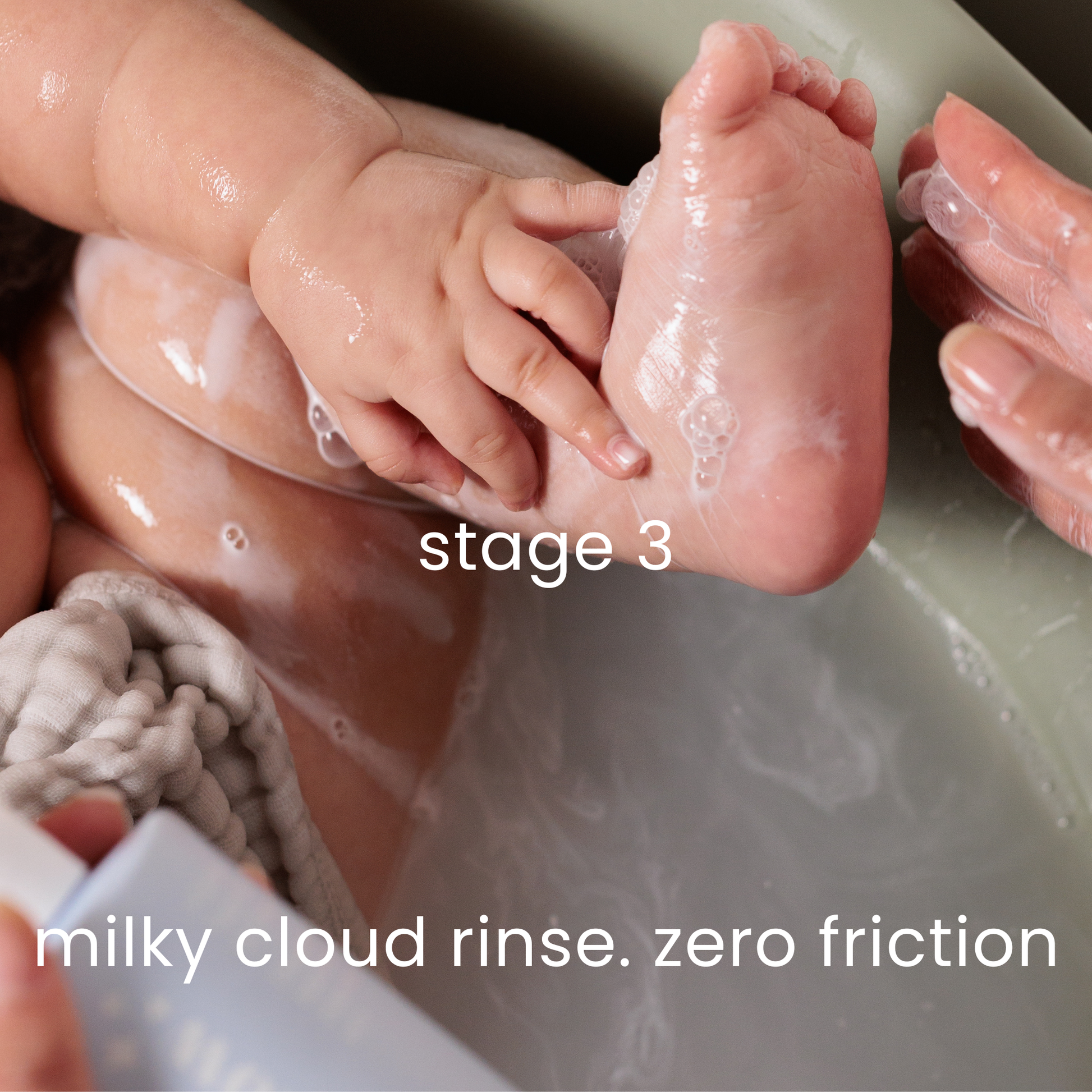 "The 3-phase emulsifying texture made bath time so easy, each stage is like a step in the bath time ensuring I don't over scrub. The product is so gentle and moisturizing. I could already see the skin looking softer, more hydrated and clearly healthier” -Clinical Test Mom, Group B, 2025