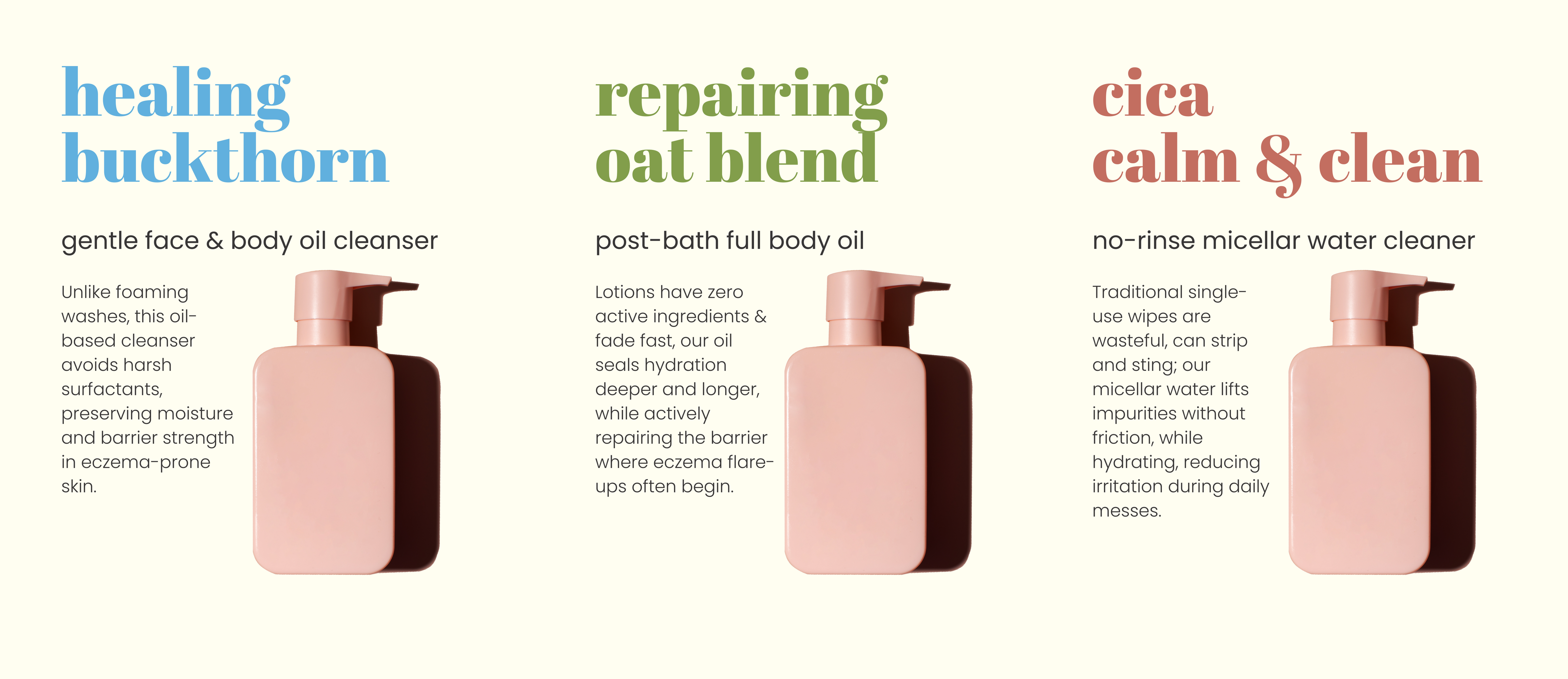 Shields skin from irritation, calms redness, & helps reduce eczema flare-ups & sensitivity.